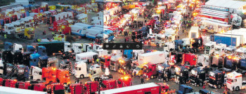 Beeindruckendes Bild: Rund 380 weihnachtlich beleuchtete und geschmückte Lastwagen sind amSamstag unter dem Motto „Lichterglanz“auf dem Autohof in Harme in Bakum zusammengekommen.