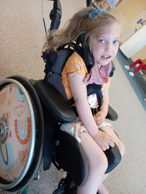 Die Hirnblutung hat alles getroffen, was mit meiner Motorik zu tun hat. Ich kann weder den Kopf alleine halten, noch greifen, krabbeln, sitzen, die Arme und Beine bewusst bewegen.