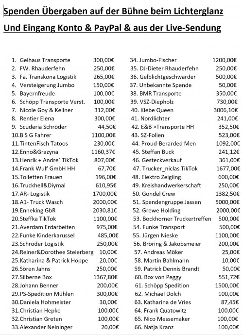 Spenden Übergaben auf der Bühne beim Lichterglanz und Eingang Konto & PayPal & aus der Live Sendung.![]()