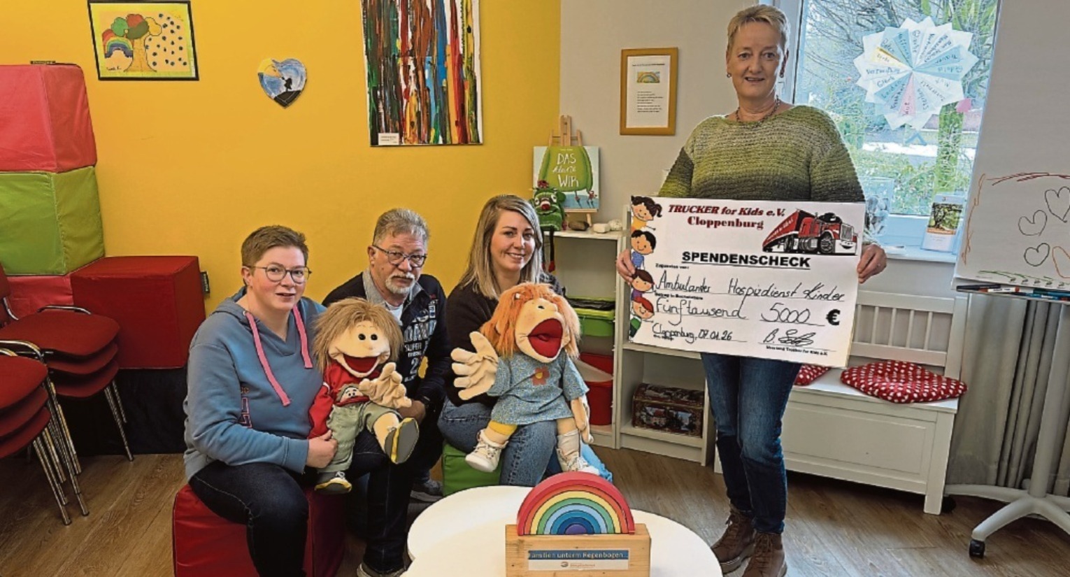Der Verein Trucker for Kids hat im Rahmen seiner Aktion „Lichterglanz“ 5.000 Euro an den ambulanten Hospizdienst für den Landkreis Cloppenburg übergeben. Das Geld wurde auf dem Lichterglanz gesammelt. Den größten Anteil brachten die Fahrerinnen und Fahrer selbst auf, zusätzlich beteiligten sich langjährige Unterstützerinnen und Unterstützer.