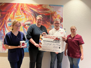 Die Freude bei Inga Subbras (stellvertretende Teamleitung), Hannah Hedemann und Alicia Müller (beide Auszubildende), war übergroß, über das tolle Ergebnis des diesjährigen Lichterglanz-Konvois und die großzügige Unterstützung der Trucker for Kids. Ulf Thiele, Vorsitzender des Fördervereins Schutzengel-Huus e.V., bedankte sich im Anschluss bei Burkhard Schnieders und seinem Vorstand: „Die Trucker for Kids helfen uns sehr dabei, dass wir die Familien unterstützen können, deren Kinder im Schutzengel-Huus leben und dass wir das Schutzengel-Huus zu einem Ort für die intensiv-pflegebedürftigen Kinder machen können, der zugleich hochprofessionelle Pflege gewährleistet und auch ein Haus ist, das Geborgenheit gibt und Familienleben ermöglicht.“