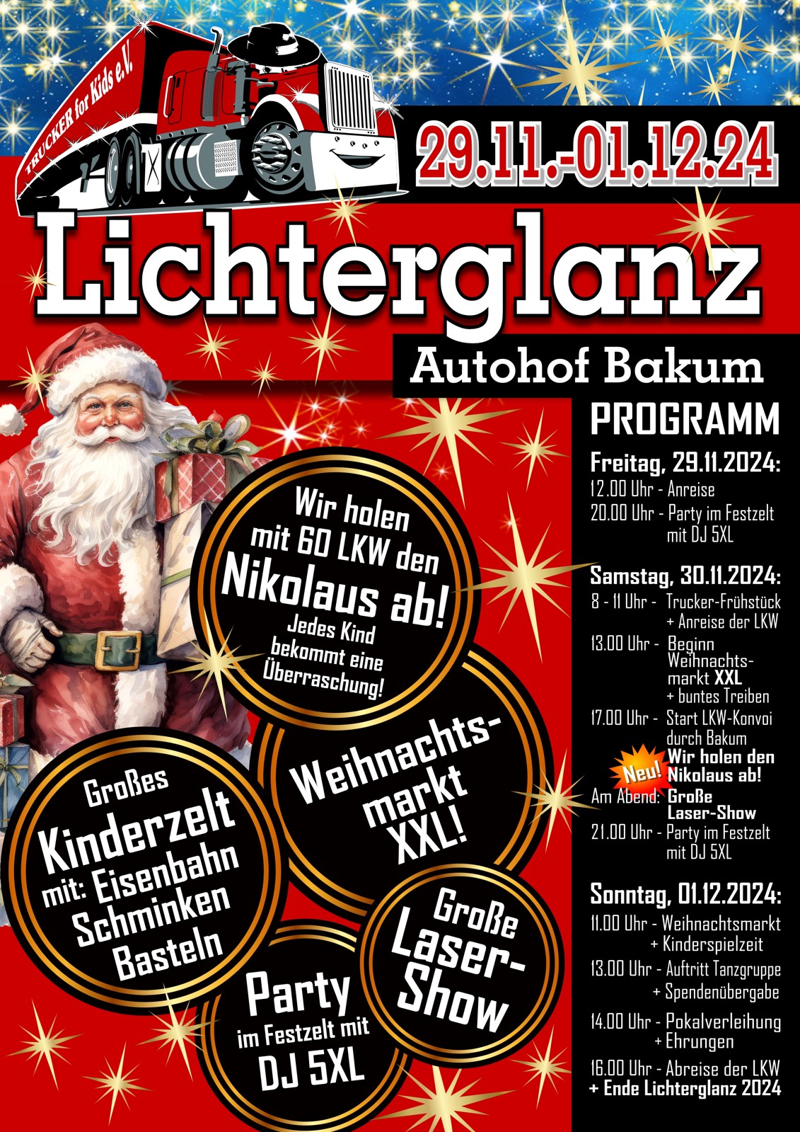 Gegen 18Uhr ist das Eintreffen des Convoy sowie den Nicolaus dem Autohof, der Nicolaus hat für alle Kinder eine Süße Überraschung mit die Am Zelt übergeben wird.