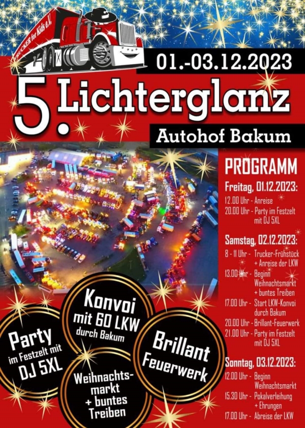 Am 1. Advent – Wochenende 01.12.23 - 03.12 2023 findet wieder unser beliebter LICHTERGLANZ auf dem Shell Autohof Vechta/Bakum statt !