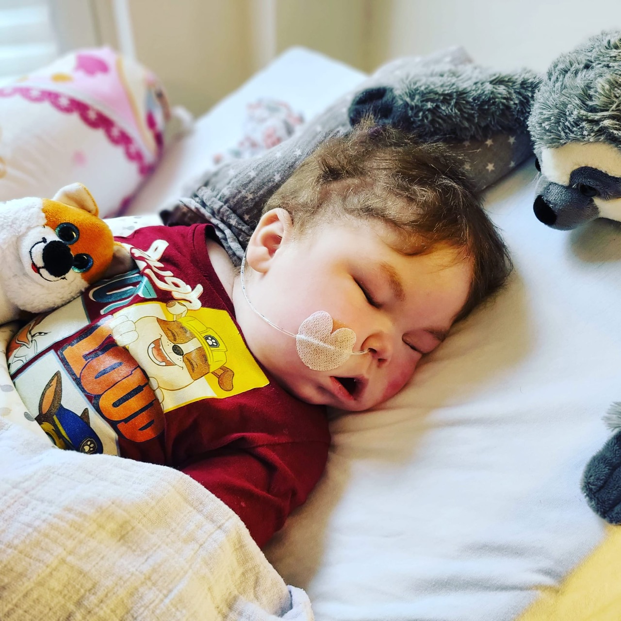 Elias leidet unter starken Krämpfen, die sehr schwer einstellbar sind und eine sehr starke Schluckstörung.