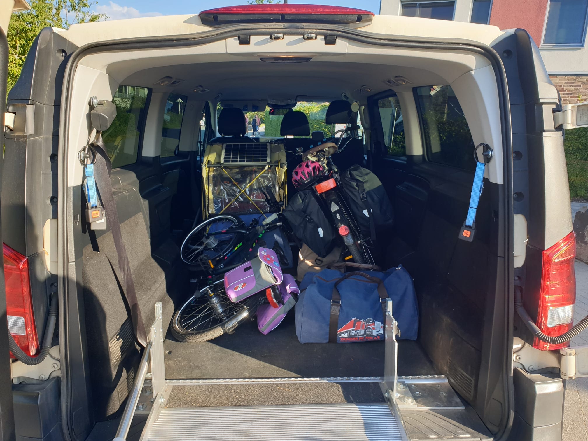 Der Klinikaufenthalt ging bis zum 24. August. Hier kamen wir wieder im Hintergrund zum Einsatz. Damit die 2 ohne Stress & vor allem sicher die 240 km wieder heimkommen zum Rest der Familie, haben wir erneut ein Großraumtaxi für die 2 organisiert, das Papa, Sophia und die Räder wieder sicher nach Hause gebracht hat.
